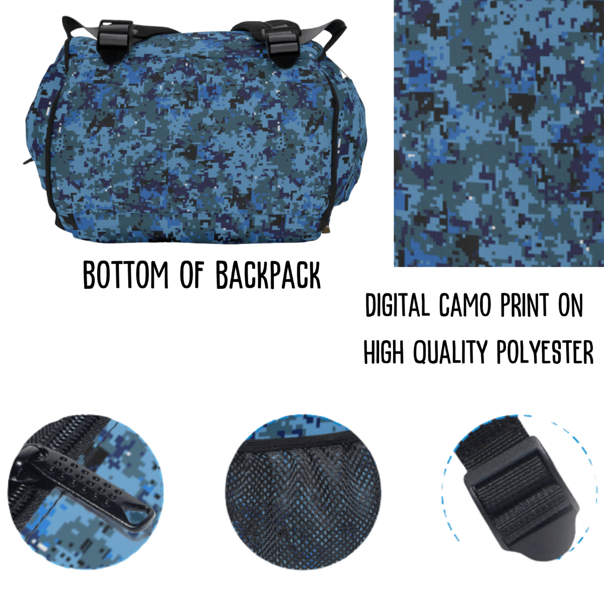 Blue Camo Backpack Laptop School Bag Travel Gift