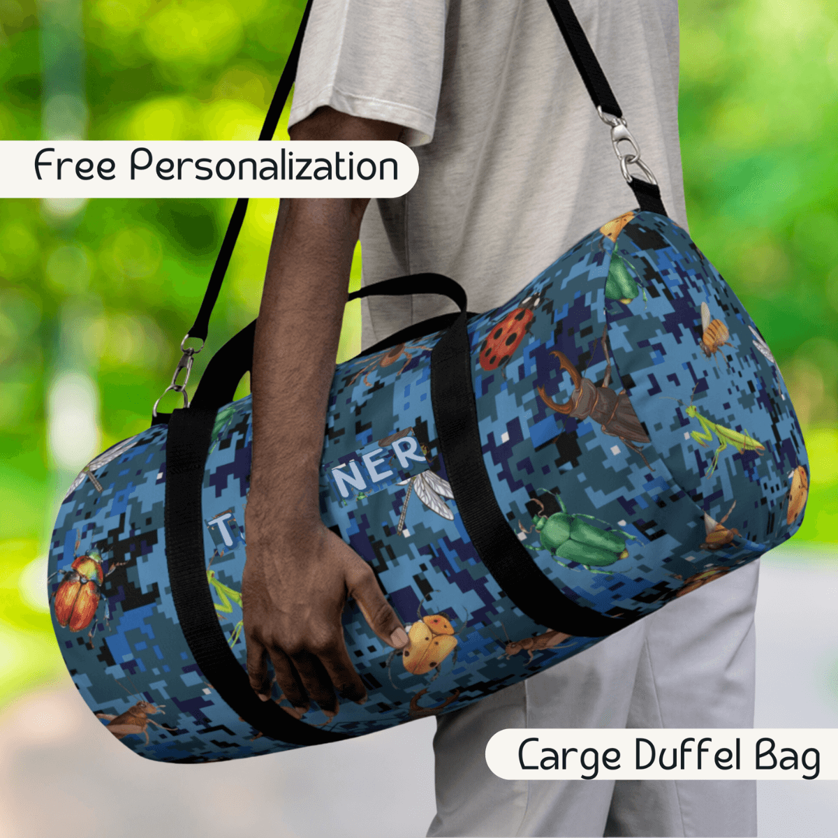 Blue Camo Bugs Duffel Bag for Boy Personalized with Name