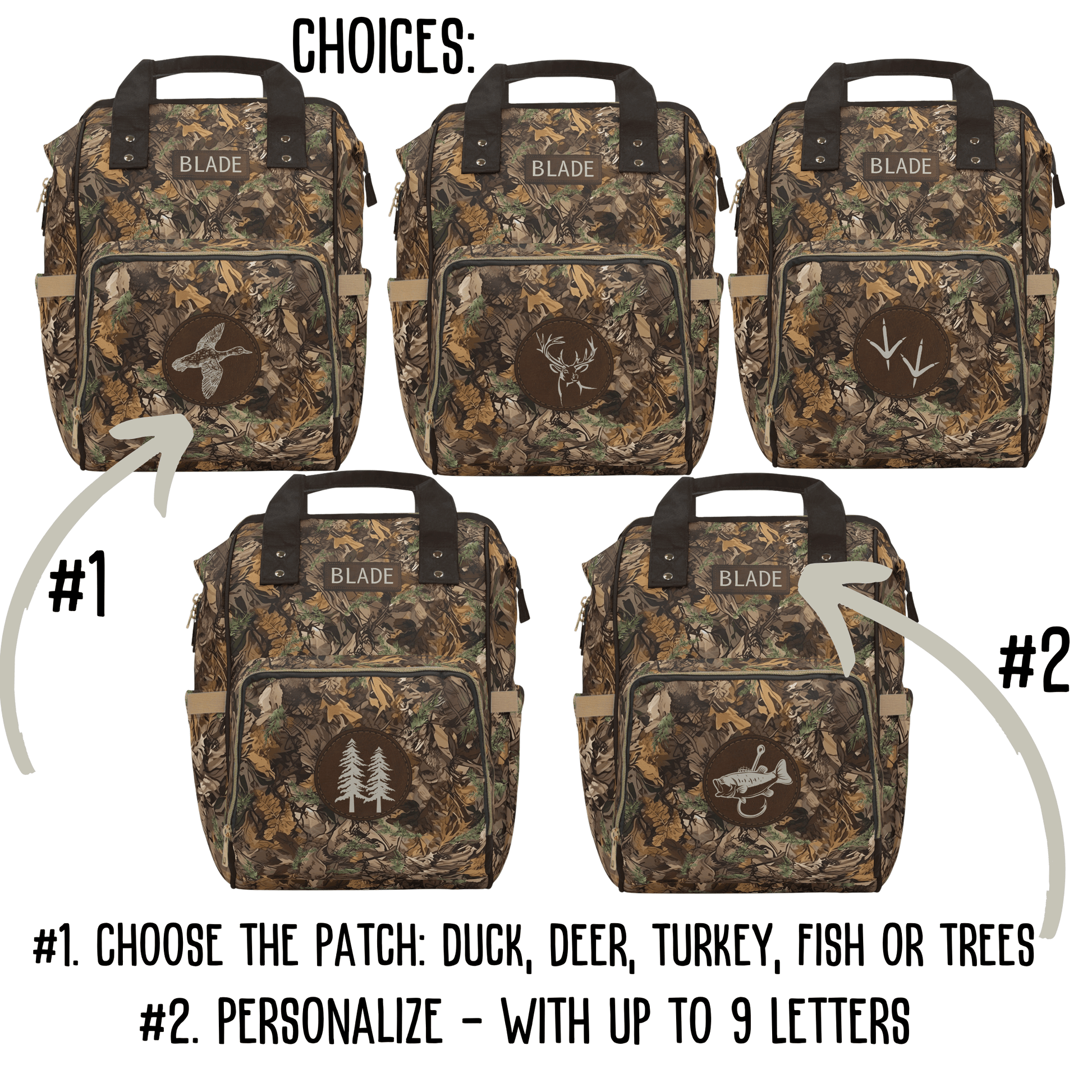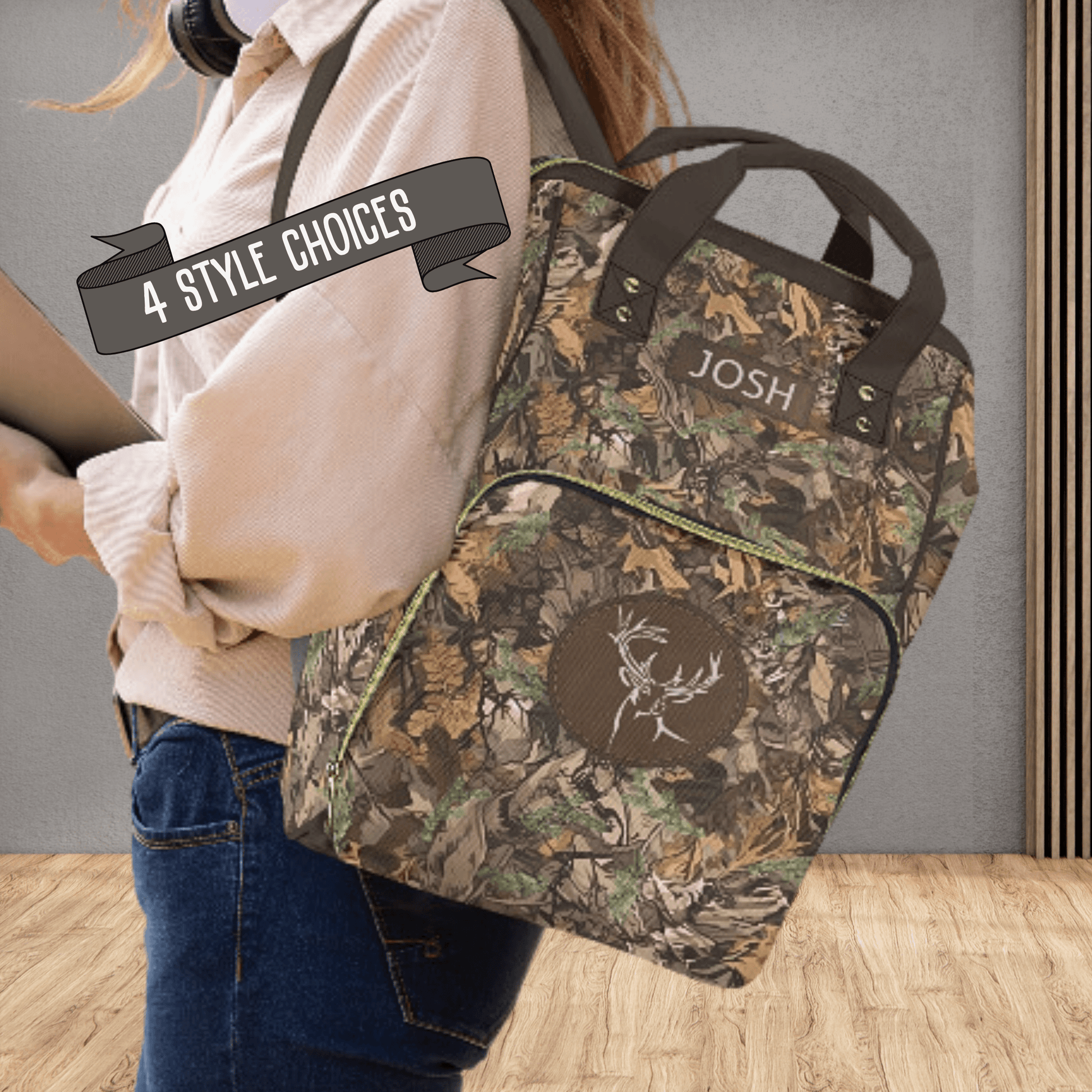 Brown Camo Diaper Bag, Personalized Baby Boy Shower Gift for Duck Turkey Deer Hunter, Mens Camouflage Diaper Organizer