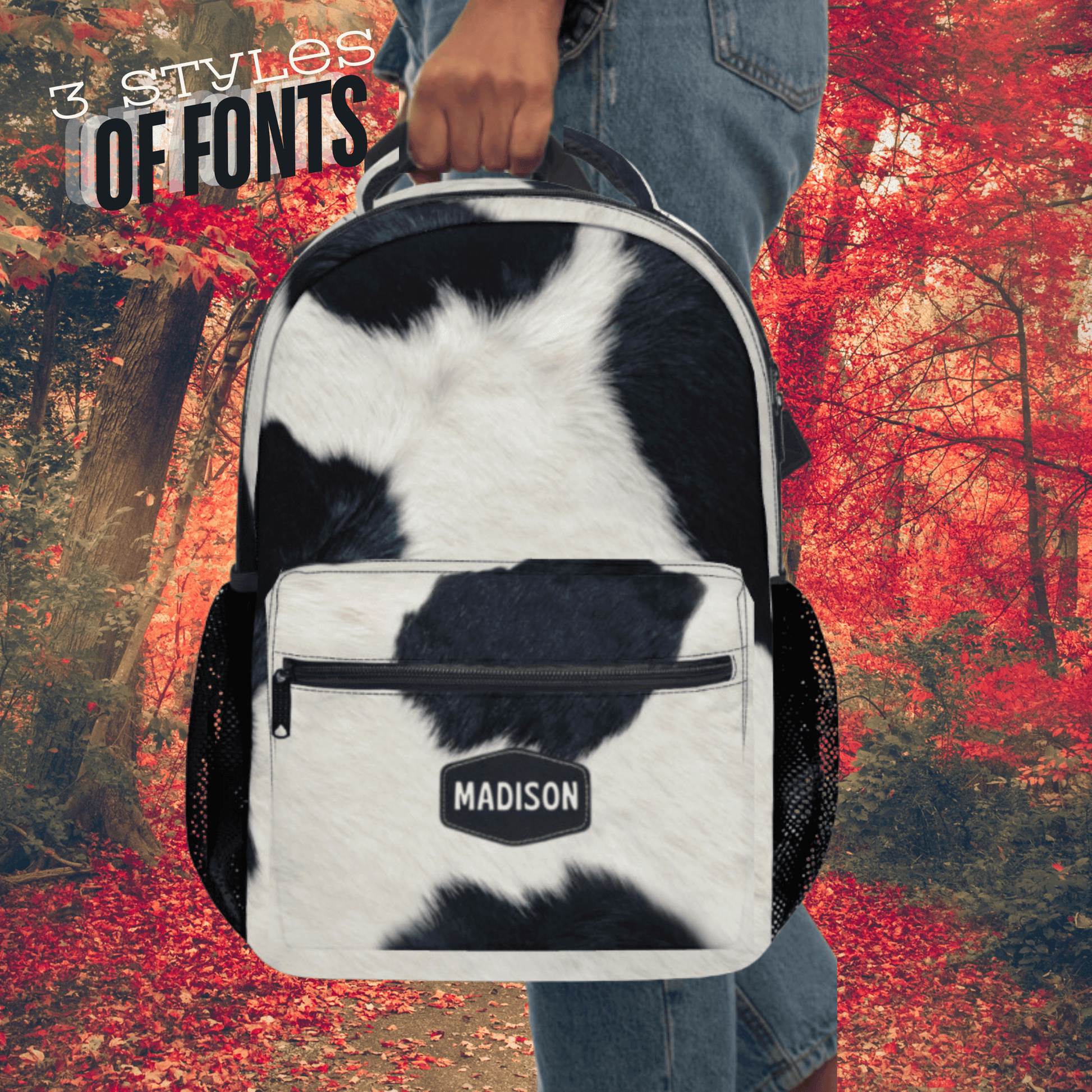 Our cow backpack is the perfect school bag for girls and women and for those who love a durable hands-free travel carry on bag.