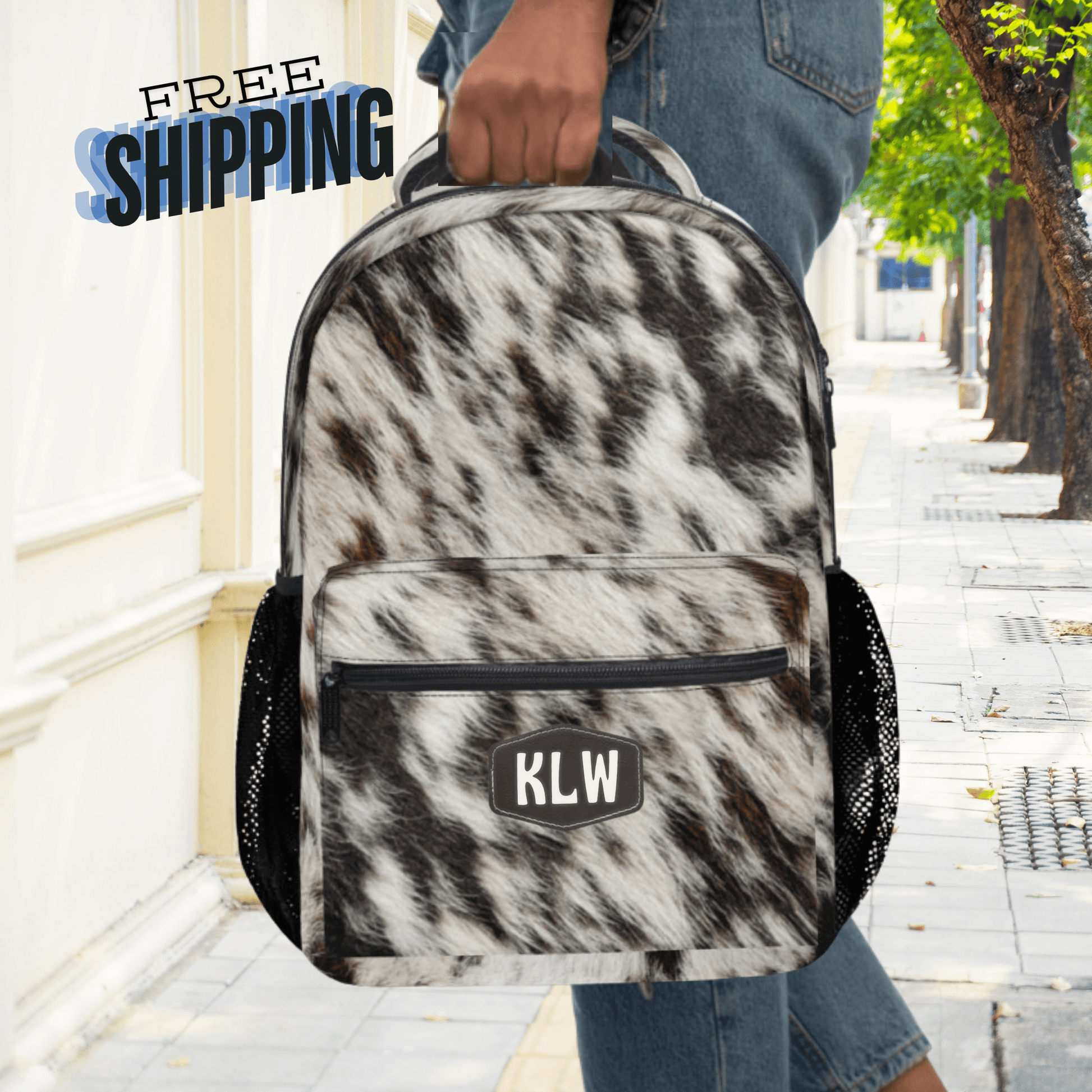 This durable cowhide backpack is the perfect size for holding all your stuff! Perfect for a personalized school bag or a western backpack for traveling hands free.