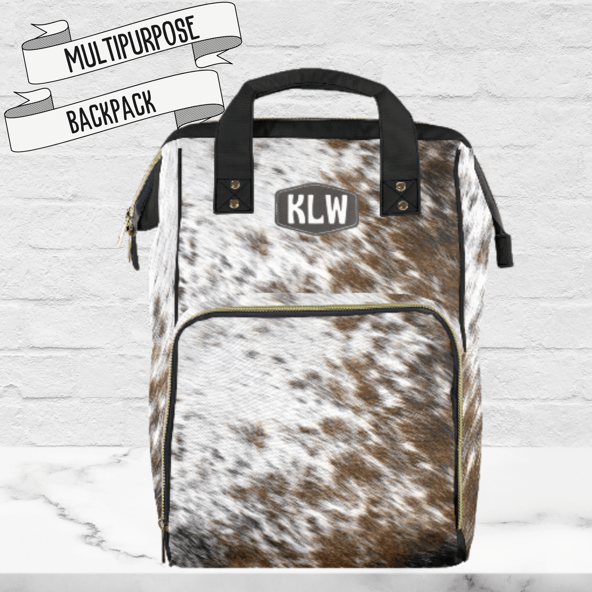 Cowhide Diaper Bag Backpack Monogram Baby Shower Gift