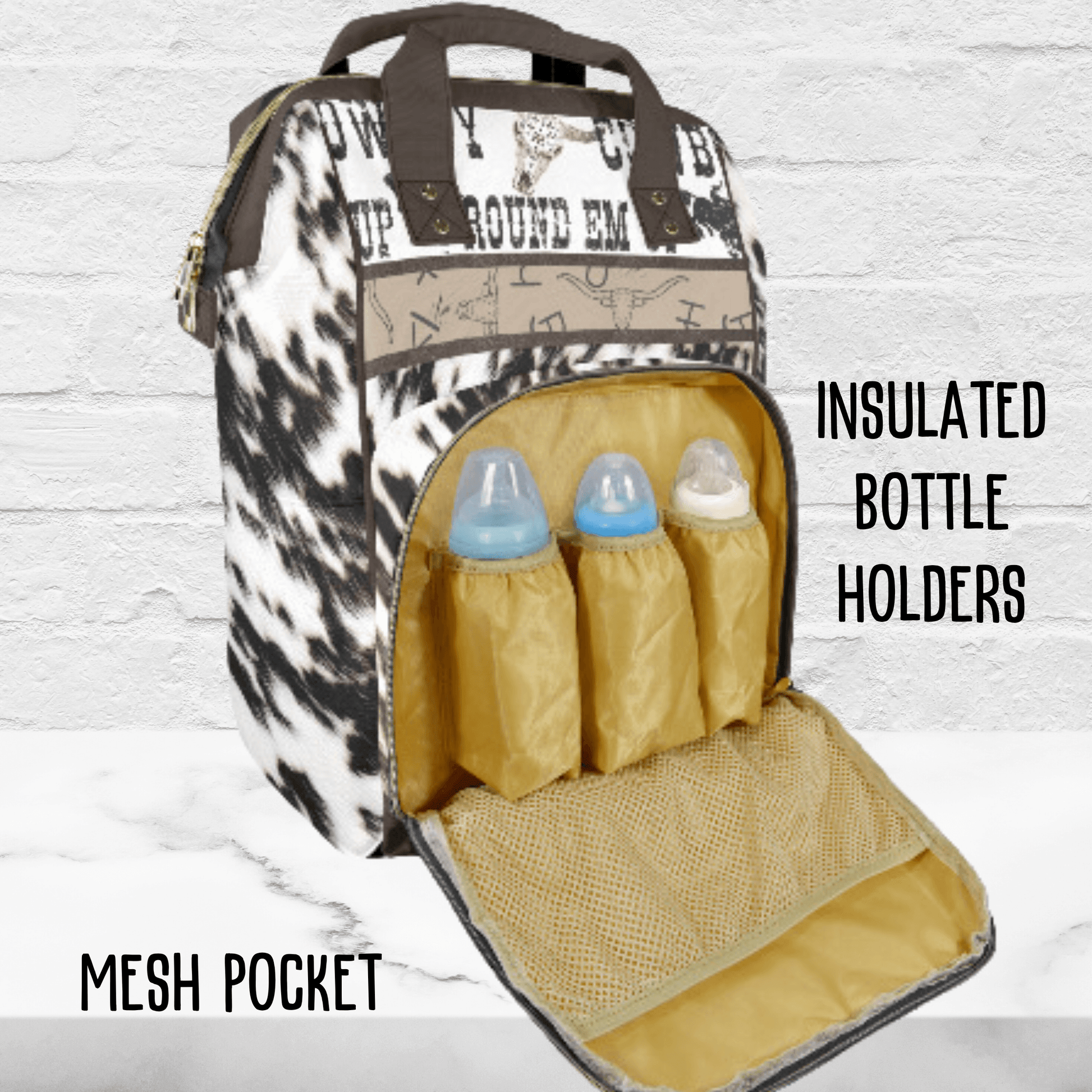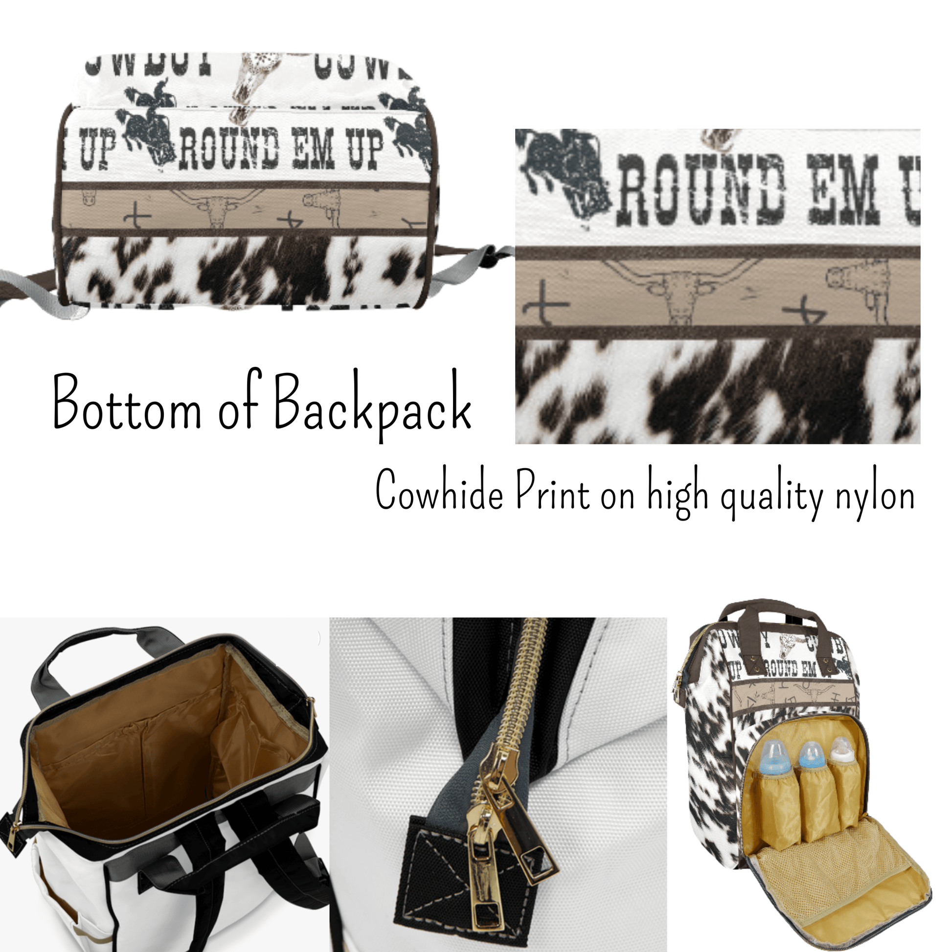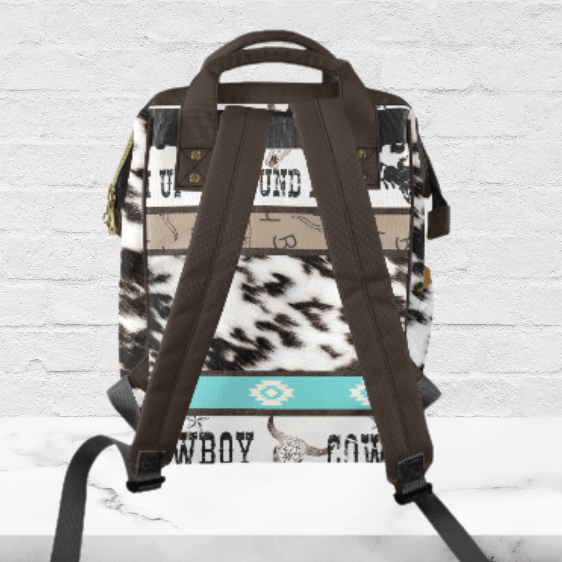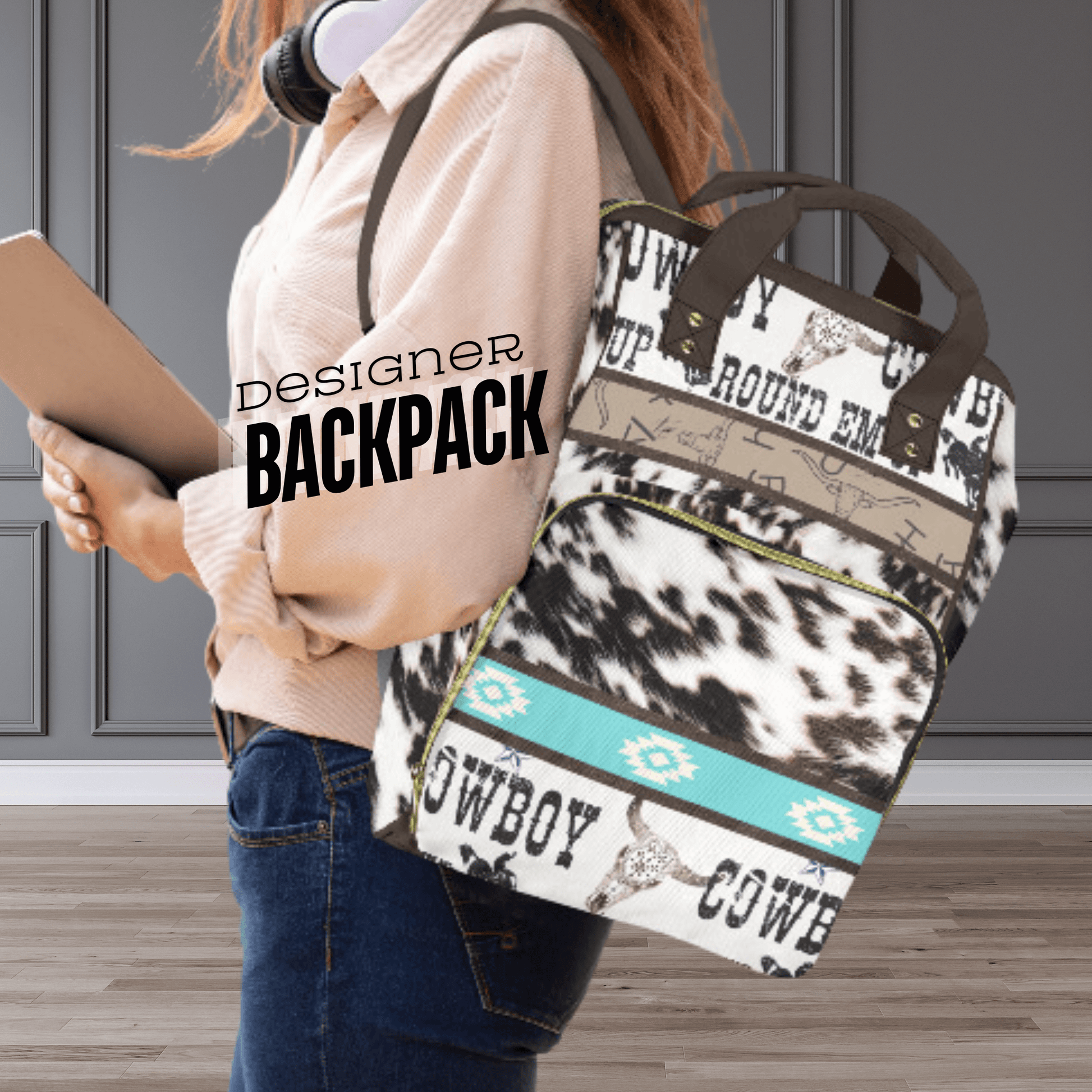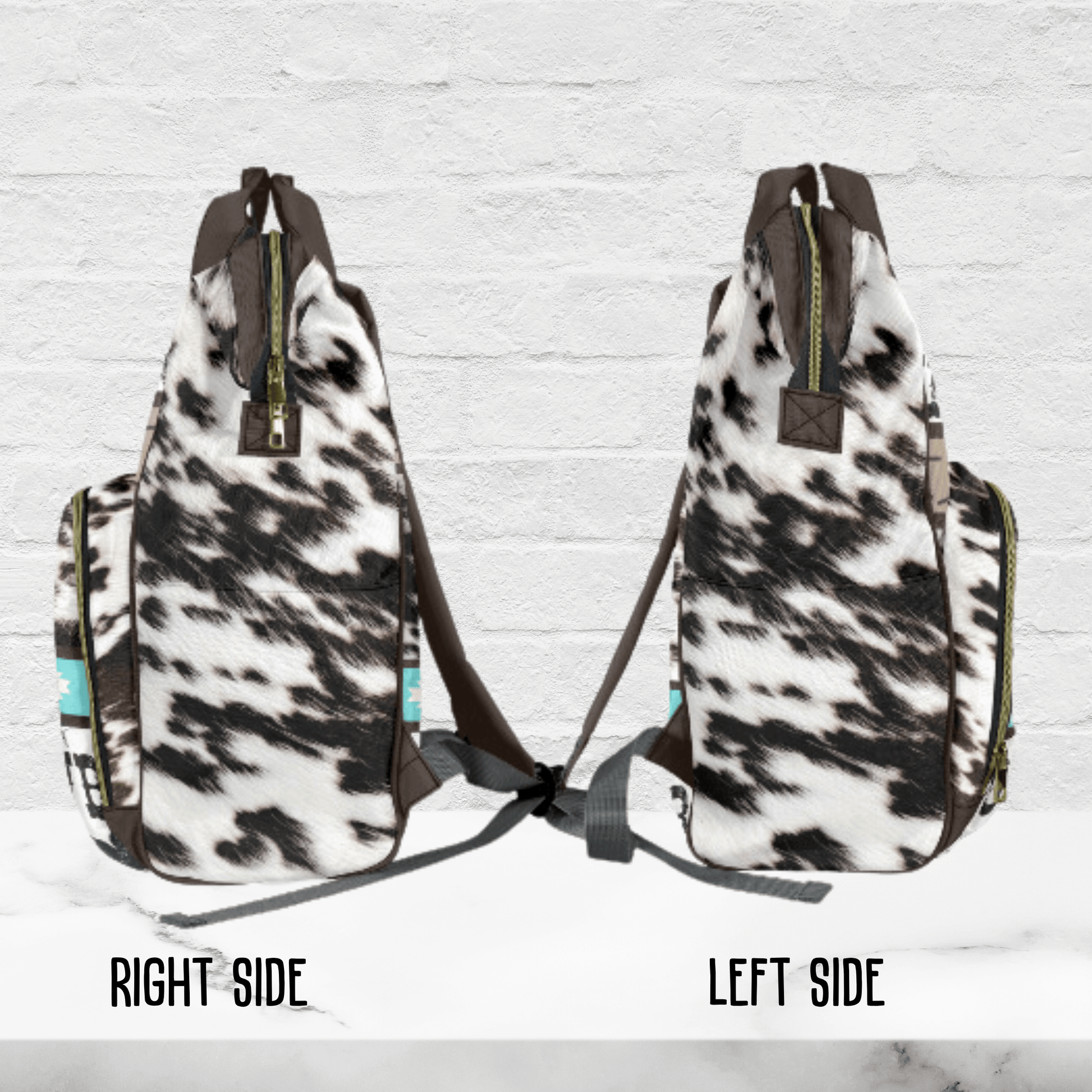 Our Cowhide Diaper Bag Backpack is the perfect Western travel bag for women, combining practicality with a chic western design. This backpack doubles as an airplane carryon bag, a unique cowgirl gift for new moms or the perfect cow print diaper backpack for baby showers, keeping all your essentials organized.