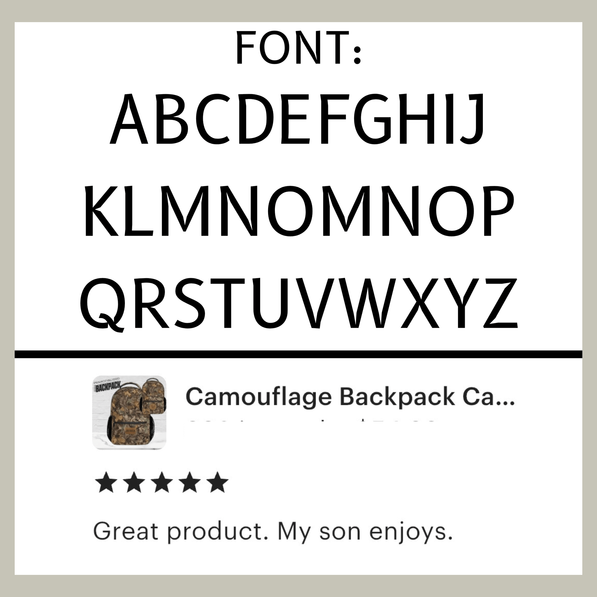 1. FRONT OF BACKPACK: Please Type your Name or Initials - (up to 18 characters) in the box: "Add your personalization"