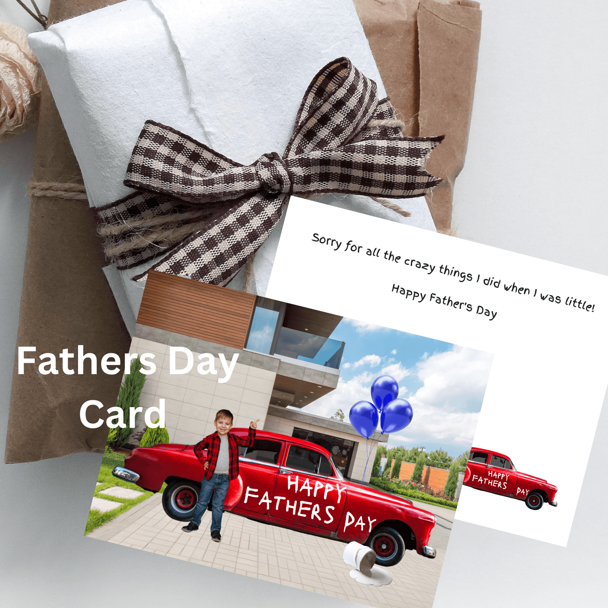 Make Father's Day extra special with this unique and hilarious digital card featuring a kid painting on his dads car! Perfect for one-of-a-kind, funny cards for Fathers Day, this instant download card is the ideal solution for those looking to save time and money.