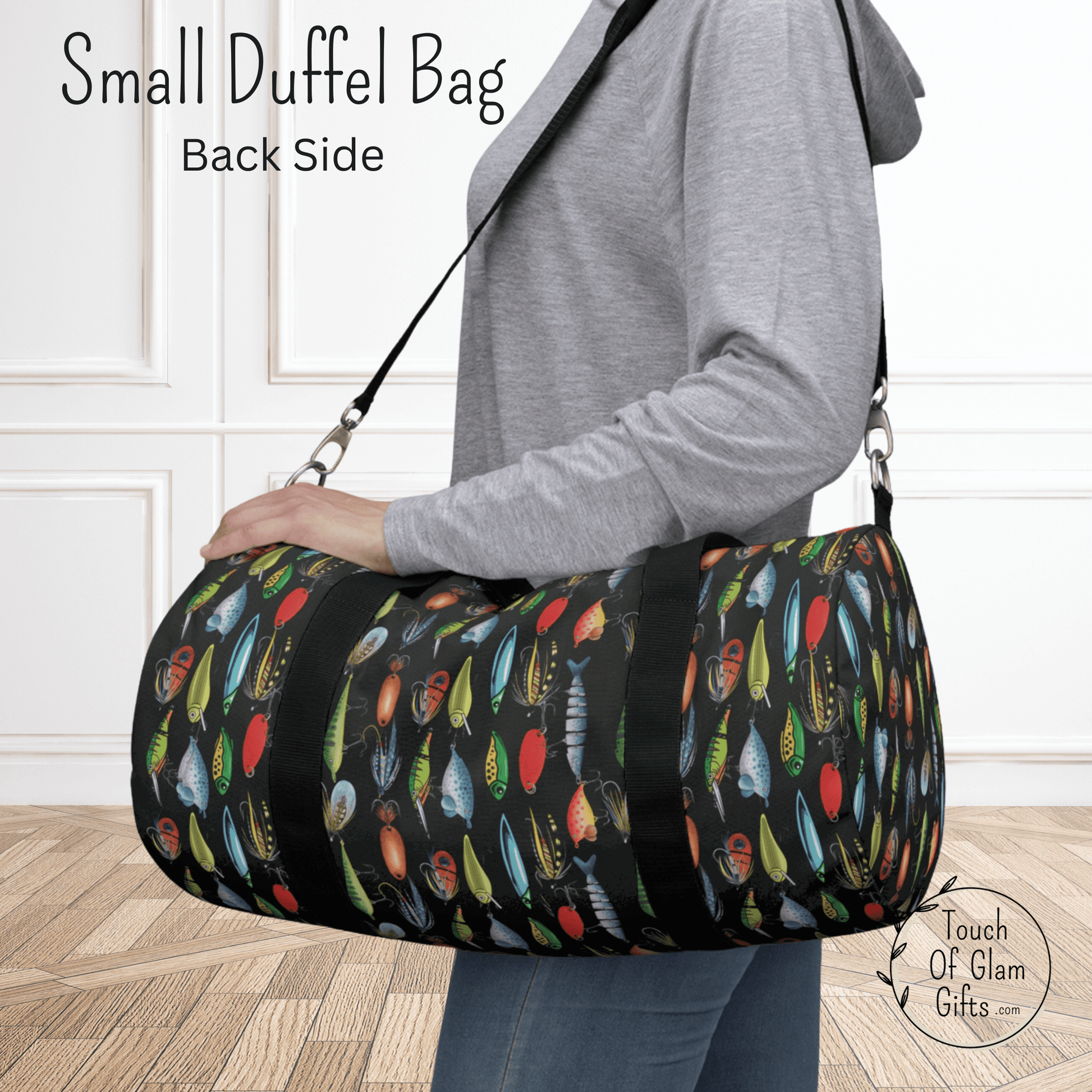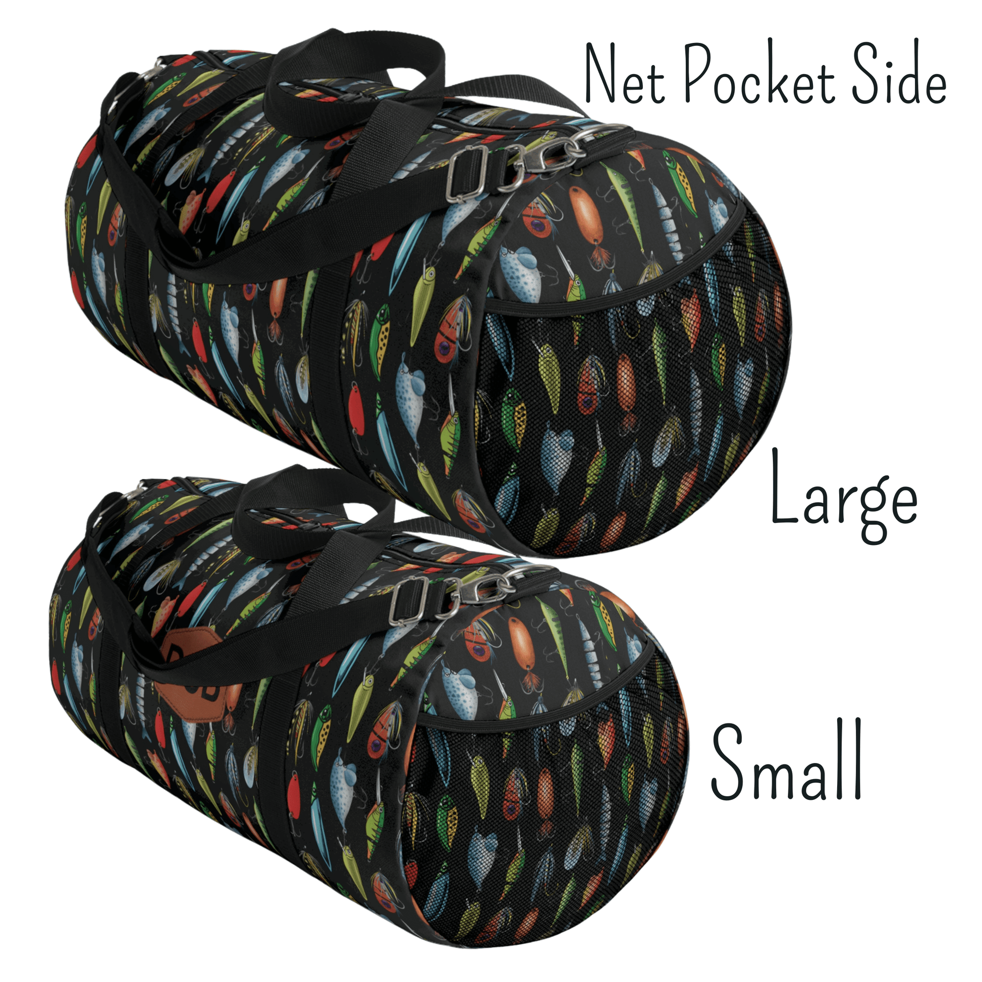 Tired of traditional gifts for men that lack personalization? This weekender bag fishing lure design is the perfect way to celebrate their love for fishing, while giving them something that's both useful and uniquely theirs. Weather it's for birthdays, Christmas or just because, a duffel bag for outdoorsmen is a great carry all bag for men.