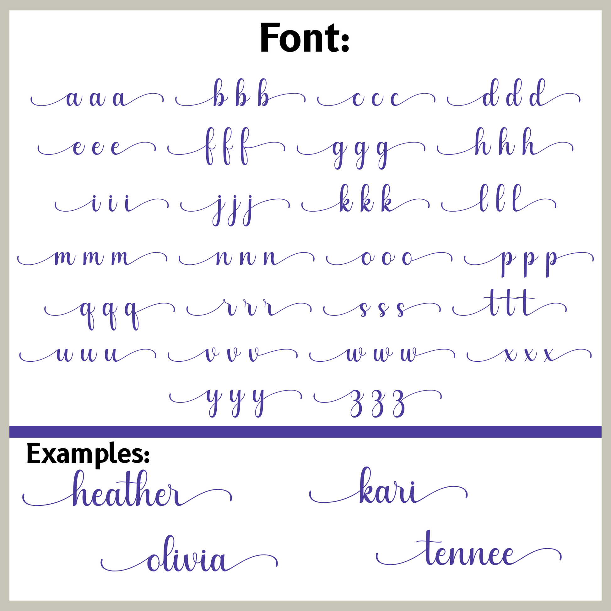 (*Letters will be ALL lower case, with a swish at the beginning and end)