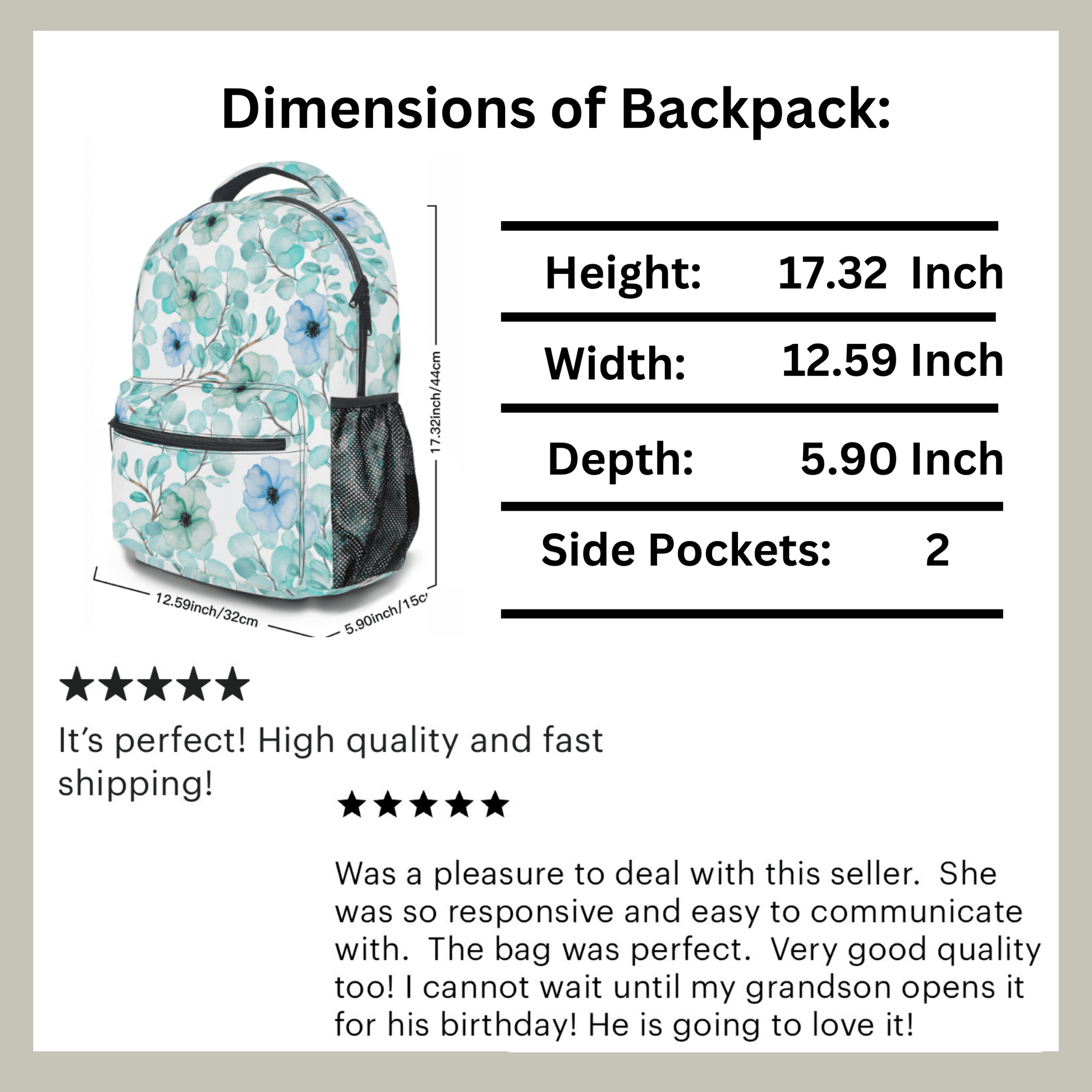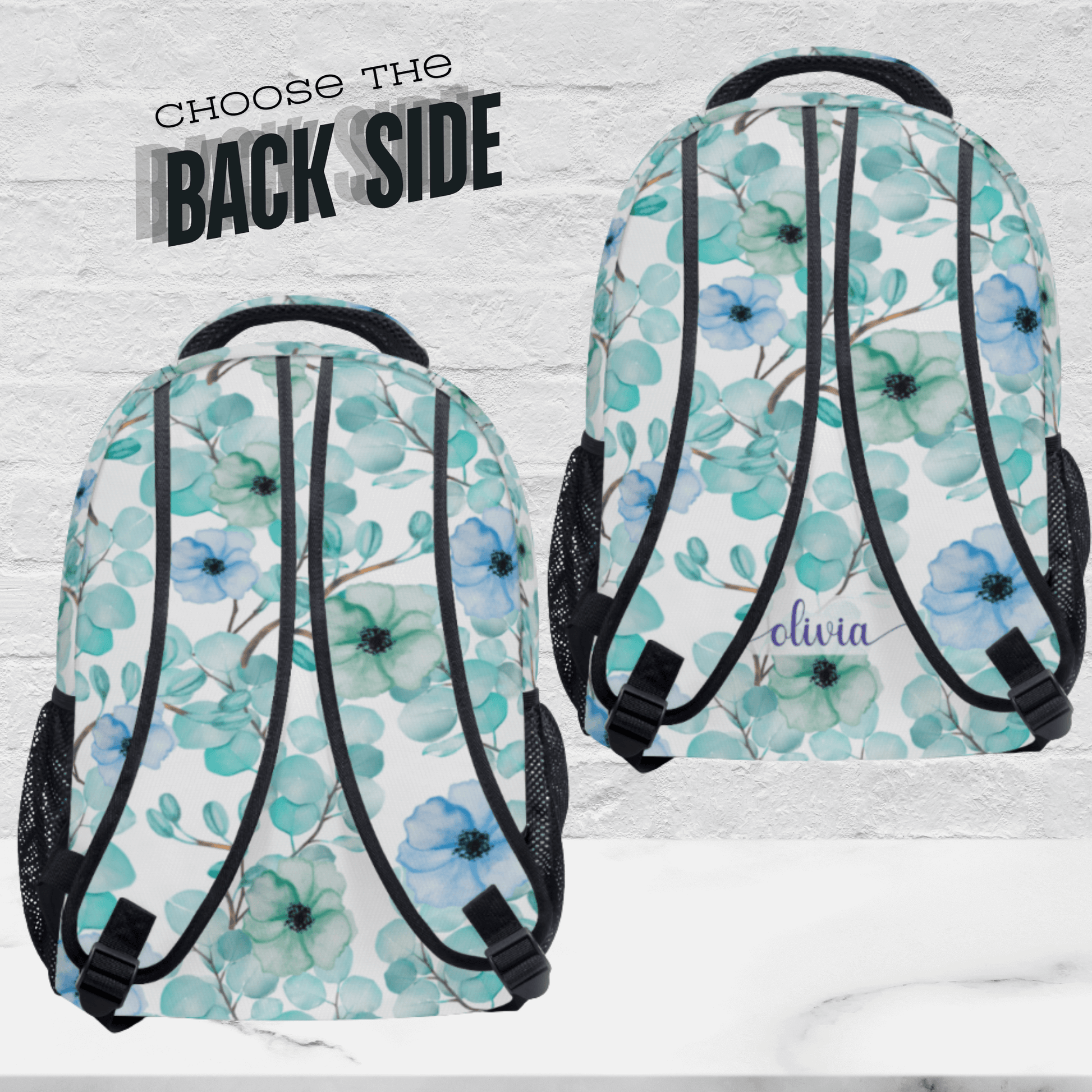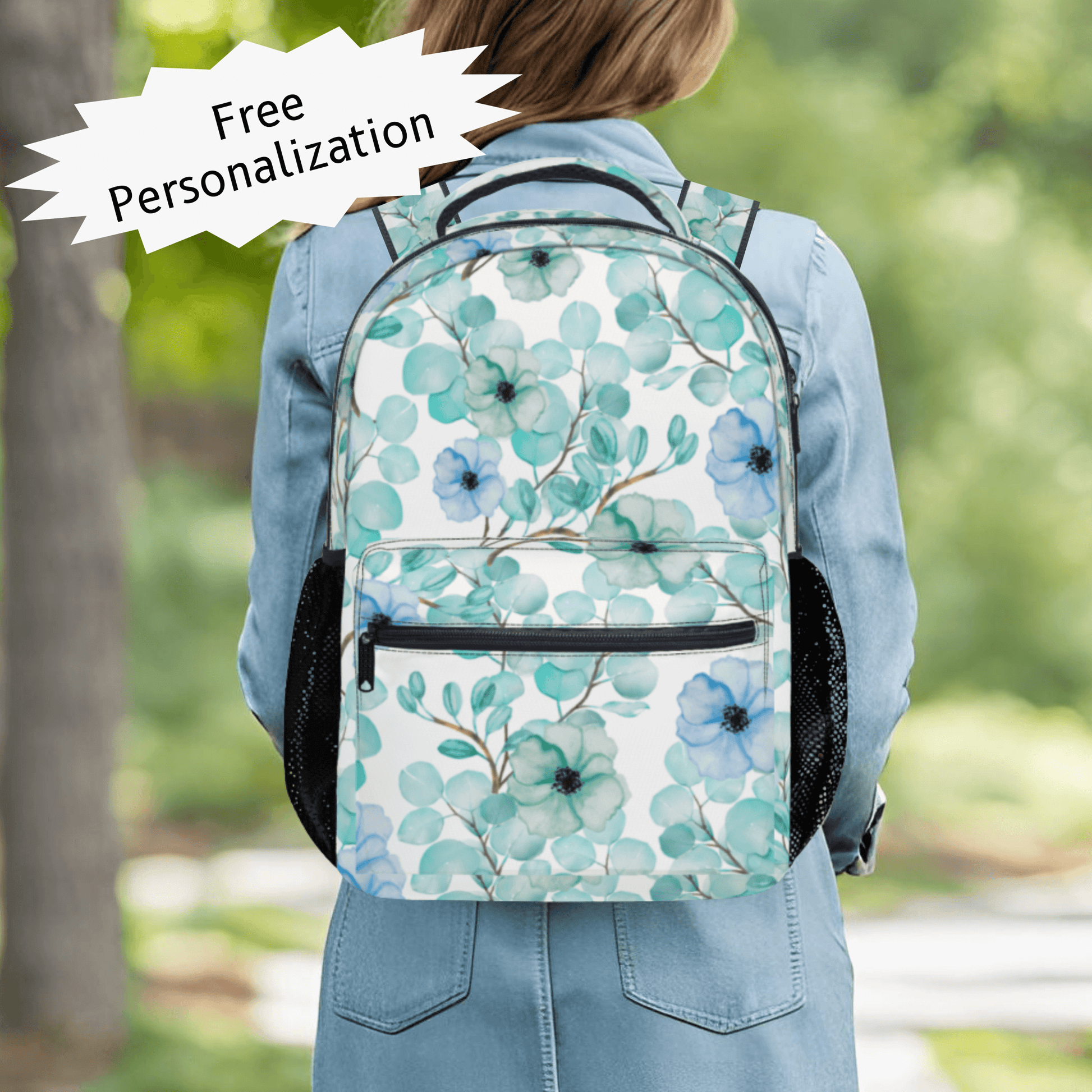 Our personalized floral backpack is the ideal personalized travel bag combining practicality with a custom design.