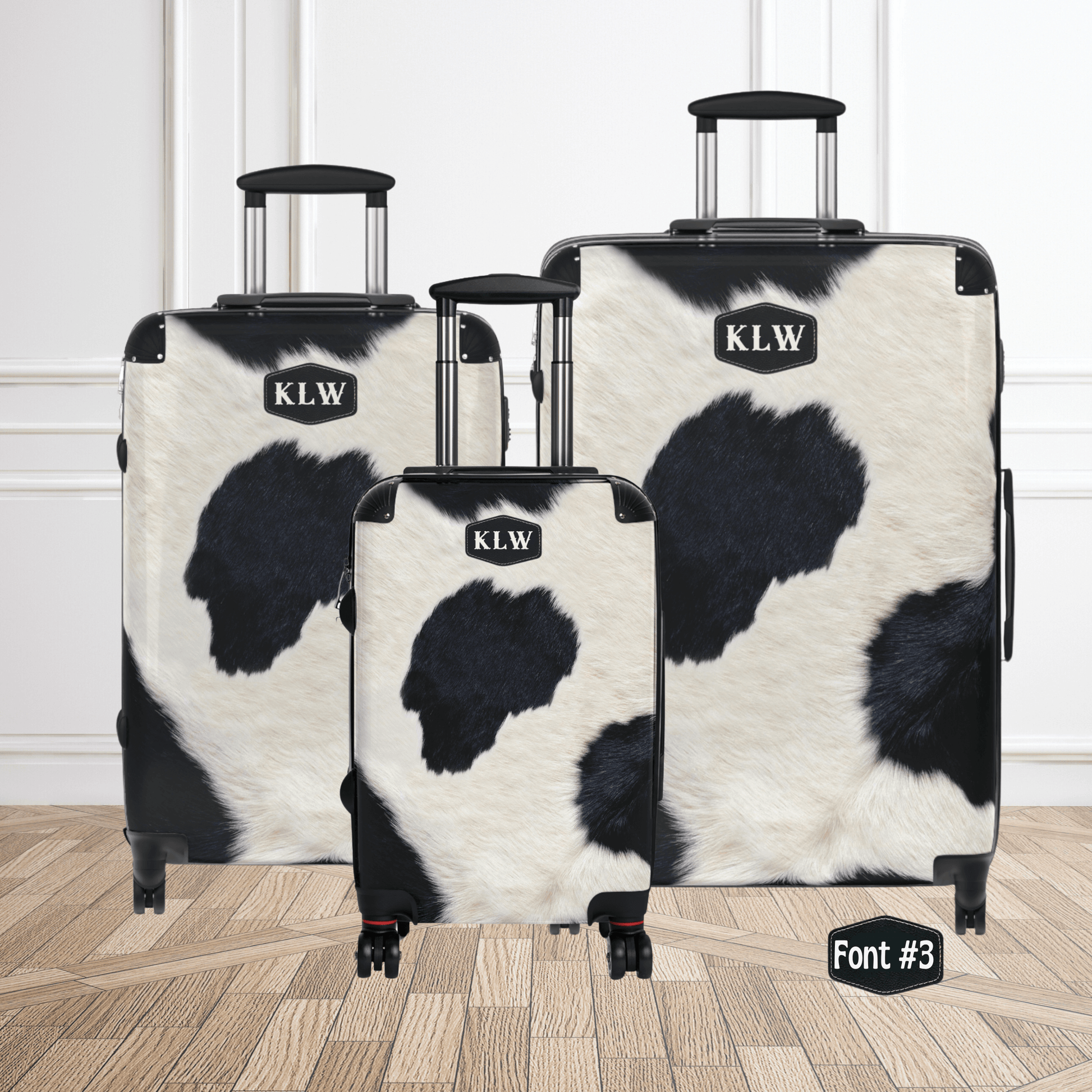 This western designer luggage set will stand out with their eye-catching black and white cow print design. Upgrade your travel gear with a cowgirl spinner suitcase for women.