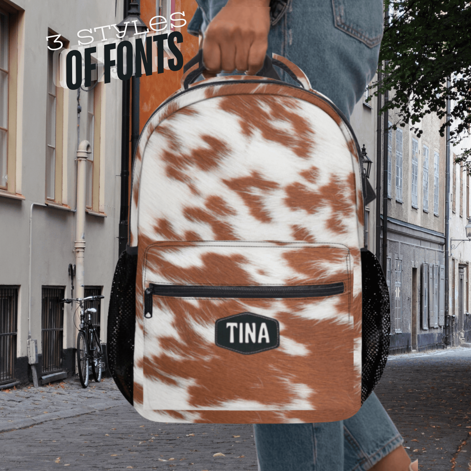Our Western backpack personalized for cowgirl is the perfect cow carry on bag for her and for those who value hands-free convenience and comfort on the go.