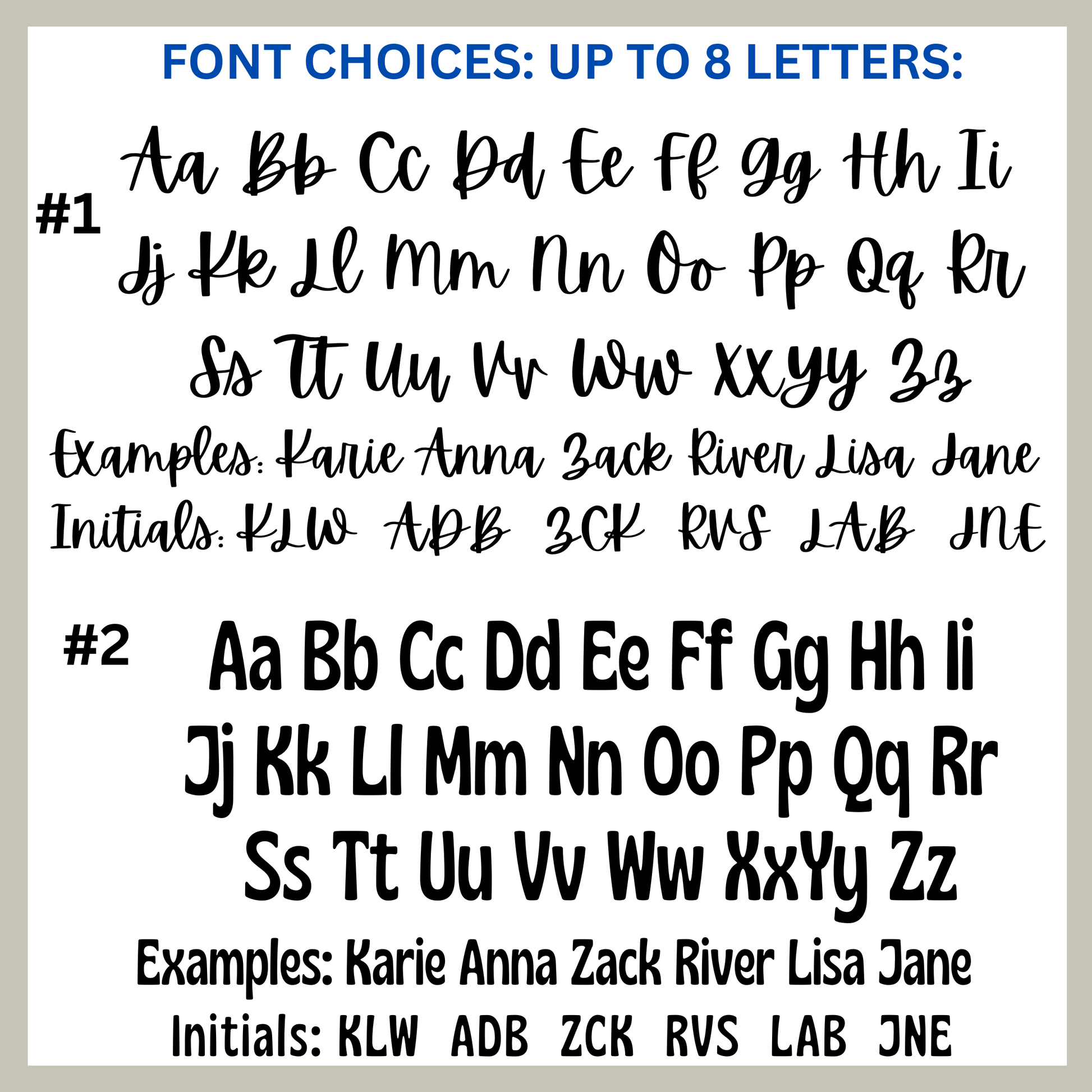 Please Type your Letters - (up to 8 characters) in the box: "Add your personalization"